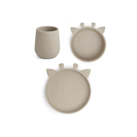 A NUUROO krém zsiráf mintás étkészlet közvetlenül Dániából érkezik, és három darabból áll: tányérból, mélytányérból és csészéből. Az összes darab LFGB-tanúsított szilikonból készült, így teljesen biztonságos és vegyszermentes a gyerekek számára. Az aranyo