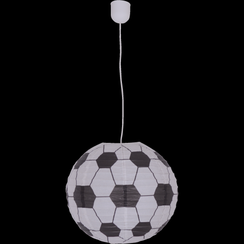 Az FEKETE-FEHÉR KLASSZIKUS FOCILABDA mintás papír függeszték üde eleme a fiú szobák berendezésének. A termék formája gömbölyded,átmérője 40 cm A függeszték dekorációs elemként összejöveteleken kerti partikon is használható A függeszték elektrtomos hálozathoz csatlakozó kábelt nem tartalmaz.A 40 cm -es átmérő a lámpabúra mérete a,termékhez szabadon választható elektromos kábel hosszúságától független.