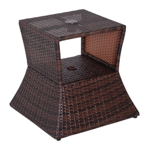 Oasom Kerti asztal napernyőtartóval polyrattan kerti bútor barna 54x54x55 cm kerti bútor termékleírás