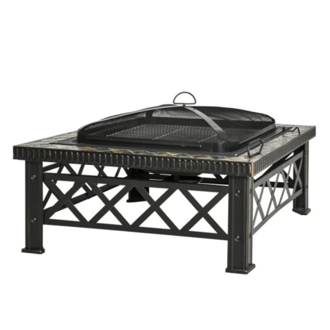 1 kép Oasom Mobil tűzrakó szikrafogóval, rostélyos kerti grill BBQ fekete 76x76x47 cm