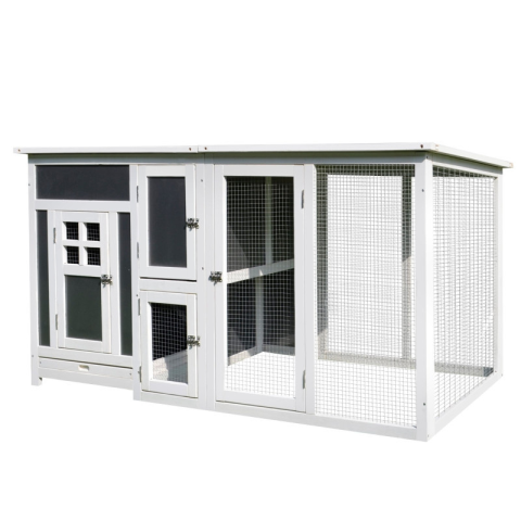 1 kép Oasom Tyúkól 160x75x80 cm baromfiház fészkelő dobozzal fenyőfa csirkeház szürke-fehér madárház, ketrec