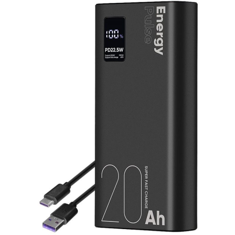 OBAL:ME EnergyPulse Powerbank 20000mAh, 22,5W, - fekete Az OBAL: EnergyPulse Powerbank egy 20,000mAh kapacitású hordozható akkumulátor, amely akár 22,5W teljesítményt is nyújt. Stílusos fekete színben elérhető, ideális választás utazáshoz vagy mindennap