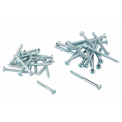 A horganyzott OBI csavarok a fa polclapoknak az U-tartóhoz való rögzítésére alkalmasak. A csomag 20 db 3,5 mm x 48 mm-es csavart és 20 db 3,5 mm x 30 mm-es csavart tartalmaz.