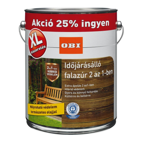 Az OBI Időjárásálló falazúr 2 az 1-ben Hybrid-Védelem formula ötvözi a klasszikus alkid gyanta tartalmú lazúrok és a modern akrilát bázisú lazúrok előnyeit. Mélyen beszívódó alkid gyanta emulzió, Hosszantartó védő filmréteg az akrilát diszperzió által.