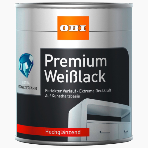 Az OBI Premium fehér lakk oldószertartalmú, kiváló feldolgozási tulajdonságokkal rendelkező aromamentes műgyanta-lakk, tapadásmentes, ütődés-, ütés- és karcolásálló, kiváló terülőképességű, nagy fedőképességű, az időjárásnak rendkívül ellenáll, fényét megőrzi, szagtalan és gazdaságos. Tartalma kb. 7,5 m2-re elegendő.