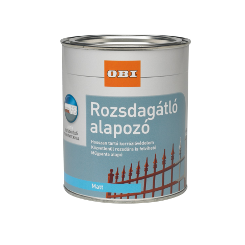 Matt univerzális alapozó rozsdavédelemmel a legkülönbözőbb felületekre bel- és kültéren egyaránt. Megbízhatóan védi a vasat és az acélt a korróziótól. Nemvasfémeken (cink, réz, stb.), festhető műanyagokon, valamint fán, farostlemezeken és semleges vakolatfelületeken alapozó festékként is használható, 120 °C-ig hőálló. Univerzálisan átfesthető valamennyi OBI 2 az 1-ben festékkel, OBI prémium festékekkel és OBI fémvédő festékekkel. A tartalom kb. 4 m2