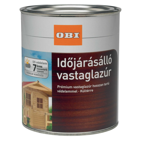 Az OBI tartós vastaglazúr egy oldószertartalmú prémium vastagrétegű lazúr, amely számos nemes fa árnyalatban kapható. Minden mérettartó és nem mérettartó fa elemhez használható kültéren, pl. faházak külső felületeihez, ablakokhoz, ajtókhoz, homlokzatok borításához, spalettákhoz stb. Minden bel- és külföldi lombhullató és tűlevelű fafajtához alkalmazható, diffúzióképes, tapadásmentes, cseppenésmentes, lerakódásmentesen kenhető, hangsúlyozza a fa term