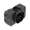 A kép illusztráció! Vakolat alatti elektronikai doboz, oldalsó kapocstérrel, szögletes alakú, a falazatba való beépítéshez legalább 50 mm mélység szükséges. • Összekötő elem bajonettzárral, amely mindkét oldalon összekapcsolható • 10 kombinált csőbevez
