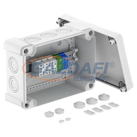 1 kép OBO 2005324 X25 H50 GNP5 LGR Leágazódoboz fővezetéki sorkapoccsal 286x202x125mm