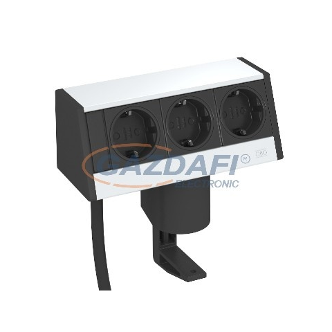 A kép illusztráció! Deskbox csatlakozó kábellel, kábelkivezetés az alján, a rögzítőszeglet 8 és 40 mm közötti állítást tesz lehetővé. Felszereltség: - három darab fekete védőérintkezős csatlakozóaljzat 0°-os kivezetéssel, 3 m hosszú hálozati kábellel C