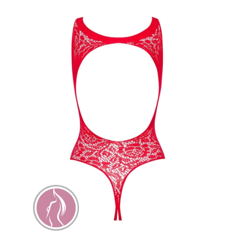 Obsessive B120 teddy (piros) Rugalmas, enyhén áttetsző, virágmintás anyagból készült, elöl pántos, hátul nyitott body. Méret: S-L egyenméret Anyaga: 90% nylon, 10% elasztán Prémium minőség, tetszetős csomagolás