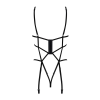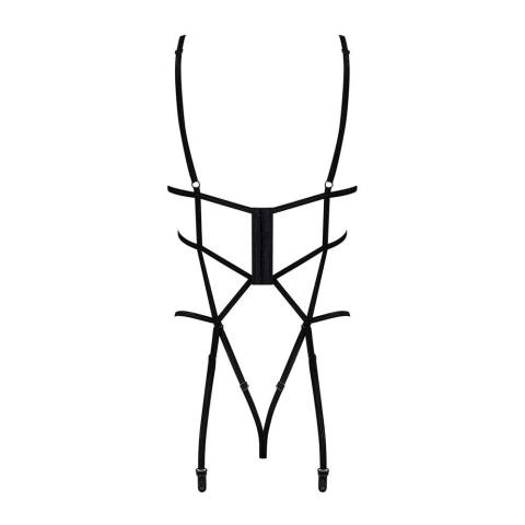 Obsessive Badossa pántos body (fekete). Szinte teljes egészében, kissé fényes, fekete, rugalmas pántokból álló body, vagyis inkább testhám. Minden lényeges ponton méretre is állítható, hátul dekoratív 2x6 elemből álló kapocssoron záródik. Szerencsés me