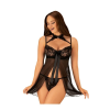 Obsessive Elizenes merevítős hálóing és tanga, fekete S/M