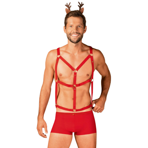 1 kép Obsessive Mr Reindy - férfi rénszarvas jelmez szett (3 részes) - piros