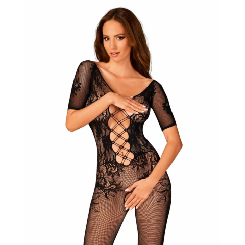 1 kép Obsessive - nyitott necc overall hátkivágással (fekete) (S-L)