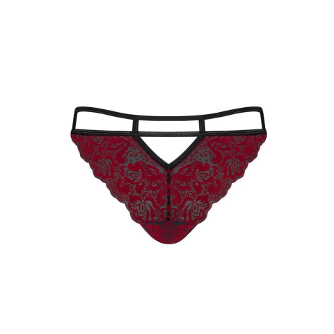 Obsessive Sugestina alsó. Jellemzően áttetsző fekete tüllön, piros damasztos mintával készült alsó, az intim résznél diszkrét béleléssel. Mérete: S-MAnyaga: 94% poliamide, 6% elasztánA modell pontos méreteihez tekintse meg a további képeket, ahol az eg
