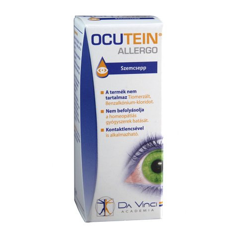 Ocutein szemcsepp allergo 15 ml Segít az allergiás, szénanáthás tünetek enyhítésében, a szem megnyugtatásában, és a szem viszkető, égő érzésének megszüntetésében. Kontaktlencsével is alkalmazható
