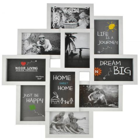 Fehér színű 10 db kép elhelyezésére szolgáló kollázs képkeret. - Méret: 54 x 49 cm