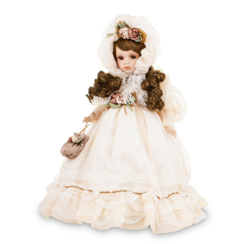 45 cm-es porcelán baba bézs-barna virágos ruhában 🎀 Ez a gyönyörű, 45 cm magas porcelán baba tökéletes ajándék kislányoknak, vagy gyűjtőknek.  A baba bézs és barna virágos ruhát visel, amely finom csipkével van díszítve.  A részletgazdag kidolgozás é...