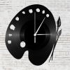 Anyaga: erdeti bakelit hanglemez Óraszerkezet: csendes, fém mutatókkal Mérete: 30cm átmérő Működése: 1db AA elemmel (1,5V-os ceruza elem) nem tartozék