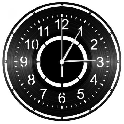 Anyaga: erdeti bakelit hanglemez Óraszerkezet: csendes, fém mutatókkal Mérete: 30cm átmérő Működése: 1db AA elemmel (1,5V-os ceruza elem) nem tartozék