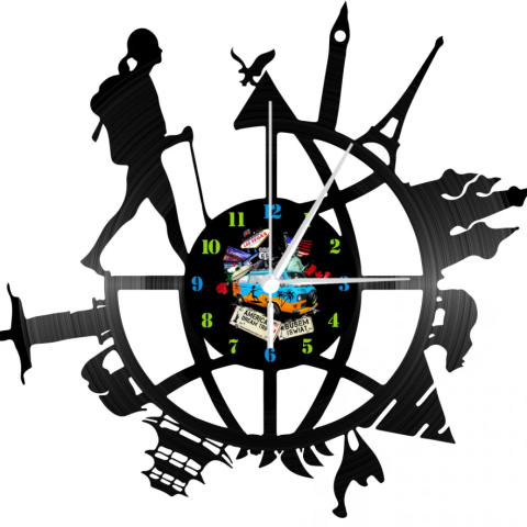 Anyaga: erdeti bakelit hanglemez Óraszerkezet: csendes, fém mutatókkal Mérete: 30cm átmérő Működése: 1db AA elemmel (1,5V-os ceruza elem) nem tartozék