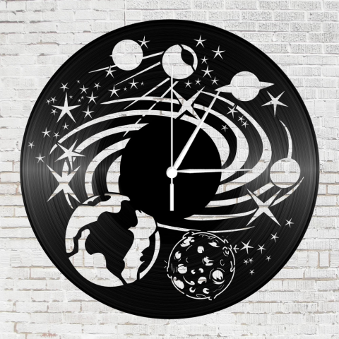 Anyaga: erdeti bakelit hanglemez Óraszerkezet: csendes, fém mutatókkal Mérete: 30cm átmérő Működése: 1db AA elemmel (1,5V-os ceruza elem) nem tartozék