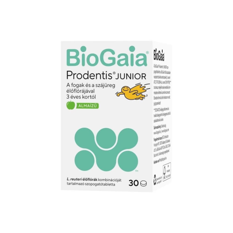 Biogaia prodentis junior szopogatótabletta alma ízű 3 éves kortól 30 db Étrend-kiegészítő. 3 éves kortól ajánlható szopogatótabletta xilittel és finom almaízzel. Miért jó? A BioGaia® Prodentis® Junior szopogatótabletta L. reuteri Prodentis®-t, a BioG