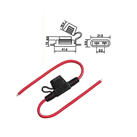 Vastag vezetékkel ellátott vízhatlan biztosíték tartó normál méretű késes biztosítékokhoz. A vezeték úgy van kialakítva, hogy tetszőlegesen elvágható. Az autó elektromos rendszer bővítésére kiváló választás ez a biztosíték tartó. A kupakja lehetővé teszi, hogy a belehelyezett késes biztosíték védve legyen.