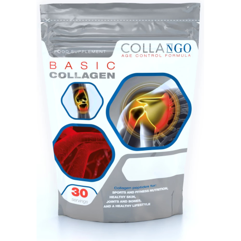 "Collango Collagen BASIC A Collango Collagen Basic egy alap kollagén, melynek neve a termék összetételére utal, 100% sertés kollagén. Hozzáadott vitaminok, színezék és ízesítés nélkül. A név kötel...
