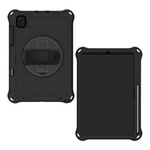 Defender szilikon telefonvédő (ütésállóság, 360°-os kitámasztó, méhsejt + kézpánt) FEKETE