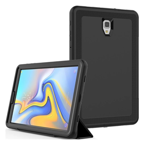 Defender telefonvédő gumi (FLIP előlap, műanyag belső, TRIFOLD, asztali tartó, ütésállóság) FEKETE