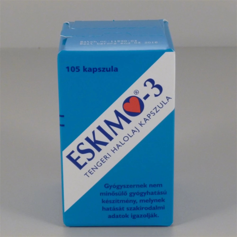 Eskimo-3 omega-3 EPA és DHA tartalmú tengeri halolaj kapszula. Szívritmuszavar, szívinfarktus megelőzésére, szív és érrendszeri megbetegedések, az újbóli szívinfarktus rizikójának csökkentésére, vé...