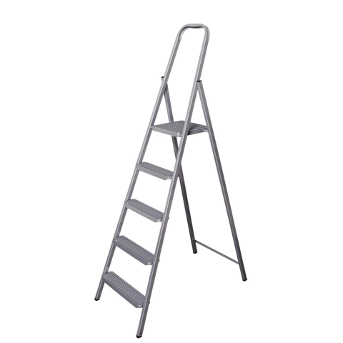 Praktikus kis tömegű 5 lépcsős összecsukható létra, otthoni ház körüli munkavégzéshez. - Létra kialakítás: Egyoldalas - Fokok száma: 5 db - A maximális terhelés: 150 kg - Súly: 6,1 kg - Anyaga: acél