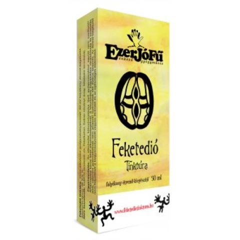FEKETEDIÓ TINKTÚRA Gyógynövény: Feketedió terméshéj Kiszerelés: 50 ml Folyékony étrend-kiegészítő Vizes-alkoholos gyógynövénykivonat Napi adag: 2 ml (2 g) kivonatnak felel meg, mely 400 mg gyógy...