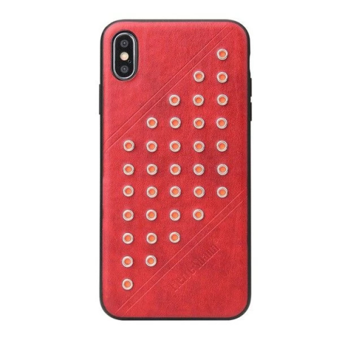 1 kép OEM FIERRE SHANN bőrhatású műanyag tok szegecses Apple iPhone XS Max piros