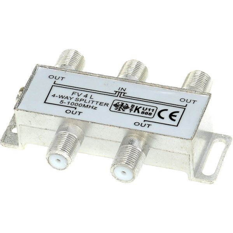 Elosztó 4 kimenettel, male csatlakozó: 5× koaxiális csatlakozó (F), female csatlakozó:, egyenes végződés Szélessávú, 4 kimenetes TV jel elosztó. Viszonylag alacsony csillapítással büszkélkedhet a jel elosztása során. Az elosztó tökéletes megoldás több készülék csatlakoztatásánál egy antennához.Műsza
