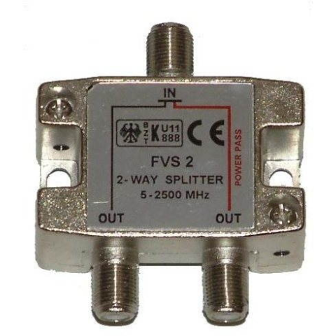 Elosztó (2 aljzatos elosztó) - male csatlakozó: 3× koaxiális csatlakozó (F), female csatlakozó: Kiváló minőségű koax elosztó műholdvevőkhöz és parabolaantennákhoz. Az elosztó kizárólag female (anya) típusú csatlakozókkal rendelkezik. Az eszköz segítségével egy kábel 2 kimenetre os