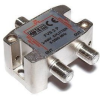 Elosztó (2 aljzatos elosztó) - male csatlakozó: 3× koaxiális csatlakozó (F), egyenes végződés Kiváló minőségű koax elosztó műholdvevőkhöz és parabolaantennákhoz. Az eszköz segítségével egy kábel 2 kimenetre osztható. Ennél a verziónál az áram két irányban áramlik. Az eloszt