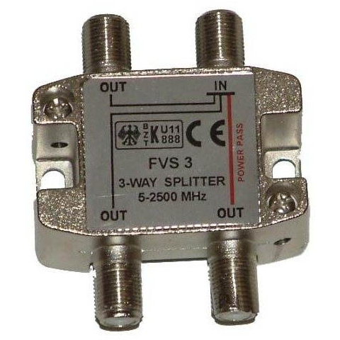 Elosztó (3 aljzatos elosztó) - male csatlakozó: 3× koaxiális csatlakozó (F), female csatlakozó: 1× koaxiális csatlakozó (F) Kiváló minőségű koax elosztó műholdvevőkhöz és parabolaantennákhoz. Az elosztó kizárólag female (anya) típusú csatlakozókkal rendelkezik. Az eszköz segítségével egy kábel 3 kimenetre oszthat