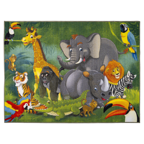 Dzsungel kalandok a gyerekszobában! 🦁🐘 Gyerekszőnyeg 200x280 cm Varázsolj igazi dzsungel hangulatot a gyerekszobába ezzel a vidám és színes szőnyeggel! A puha, mégis strapabíró anyag tökéletes játékteret biztosít a kicsiknek, miközben védi őket a hi...