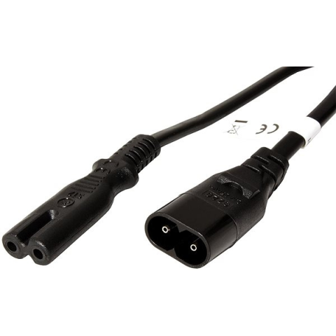 Tápkábel - hosszabbító kábel, hosszúság 2 m, male csatlakozó 1× IEC C8female csatlakozó 1× IEC C7 akár 2,5 A, egyenes végződés OEM, Hosszabbító hálózati kábel, 2-tűs, C7/C8, 2m, fekete tápkábel - alapvető tulajdonságok Ez a nagyszerű OEM tv tápkábel megbízható áramellátást biztosít a készülék számára Ez konkréten egy kábel ho