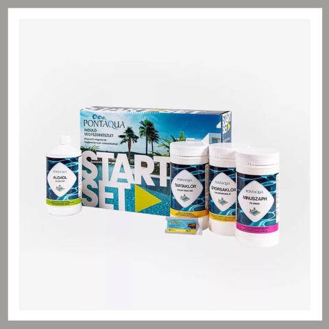 Alapvető vegyszerek a medencevíz tisztántartásához. Tartalma: 1 kg gyorsan oldódó klórgranulátum, 1 kg lassan oldódó klórtabletta, 1,5 kg pH csökkentő szer, 1 l alga elleni szer, 1 db AQUACHEK vízelemző készlet. Elengedhetetlenül szükséges vegyszerek a