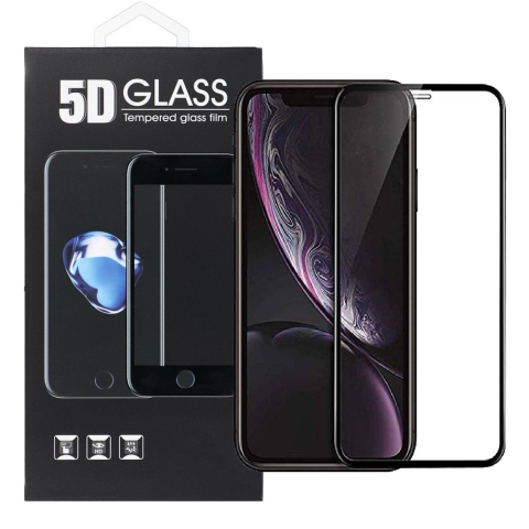 1 kép OEM iPhone 11 / XR üvegfólia, tempered glass, előlapi, 5D, edzett, hajlított, fekete kerettel