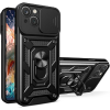 1 kép OEM iPhone 15 hátlap tok, telefon tok, kitámasztható, mágneses, ütésálló, fekete, Defender Slide