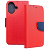 1 kép OEM iPhone 16 könyvtok, fliptok, telefon tok, bankkártyatartós, mágneszáras, piros-sötétkék, Fancy