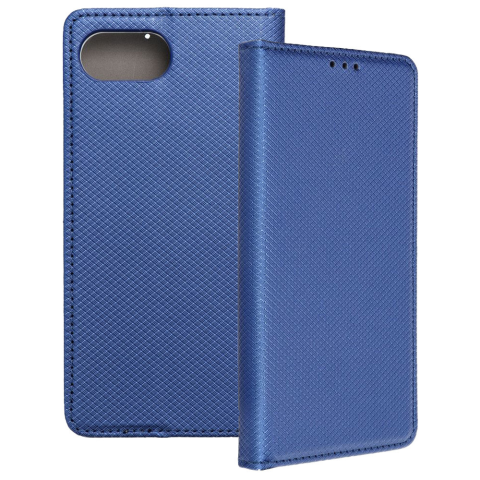 1 kép OEM iPhone 16e könyvtok, fliptok, telefon tok, szilikon keretes, mágneszáras, sötétkék