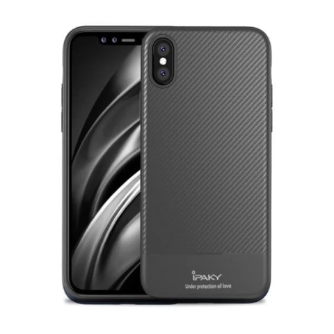 1 kép OEM iPhone XS Max 6.5 IPAKY szilikon telefonvédő ultravékony, karbon minta, SZÜRKE