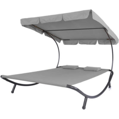 OEM Kétszemélyes napozóágy árnyékolóval szürke kerti bútor termékleírás