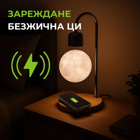 1 kép OEM Levitáló Holdlámpa vezeték nélküli telefontöltővel - Érintésmentes LED lámpa
